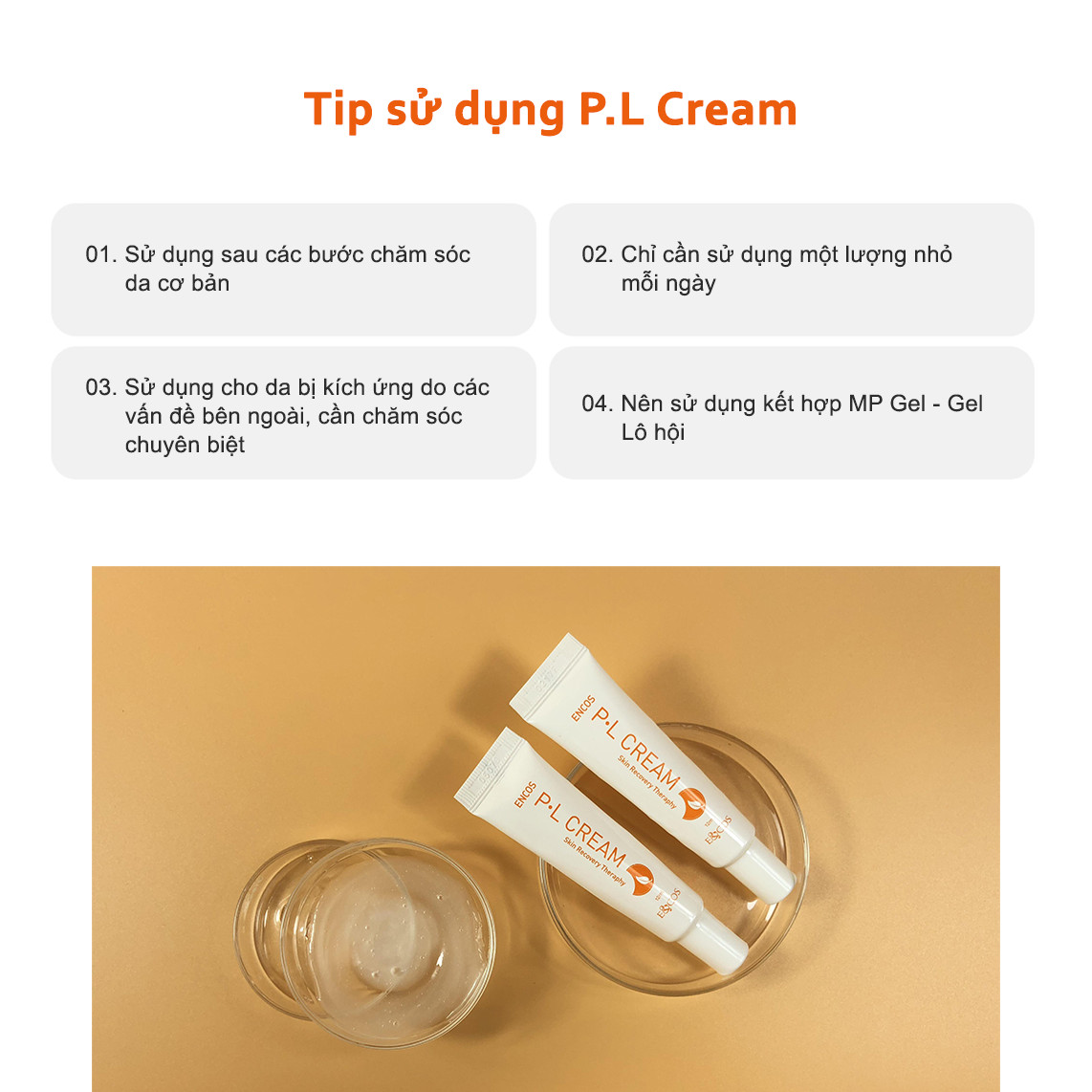 Các trường hợp sau Laser tẩy mụn ruồi, da bị tổn thương nhẹ đến trung bình, nếp nhăn quanh mắt... đều có thể sử dụng P-L Cream E&COS.