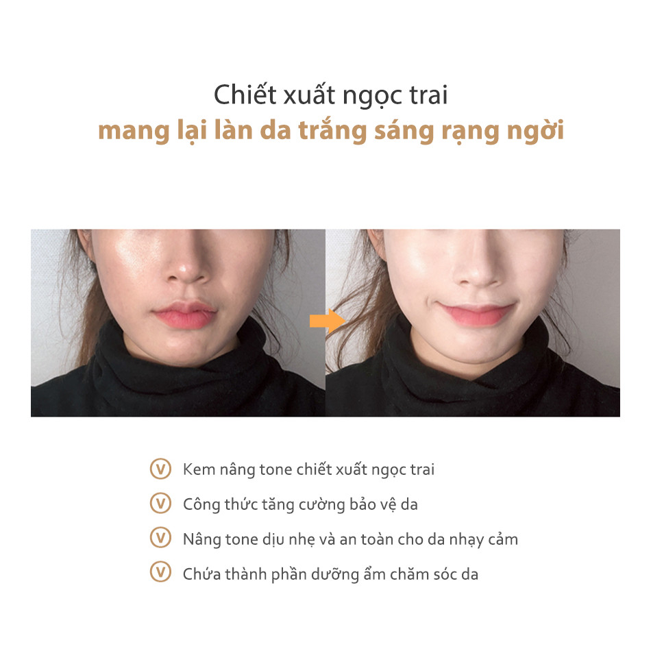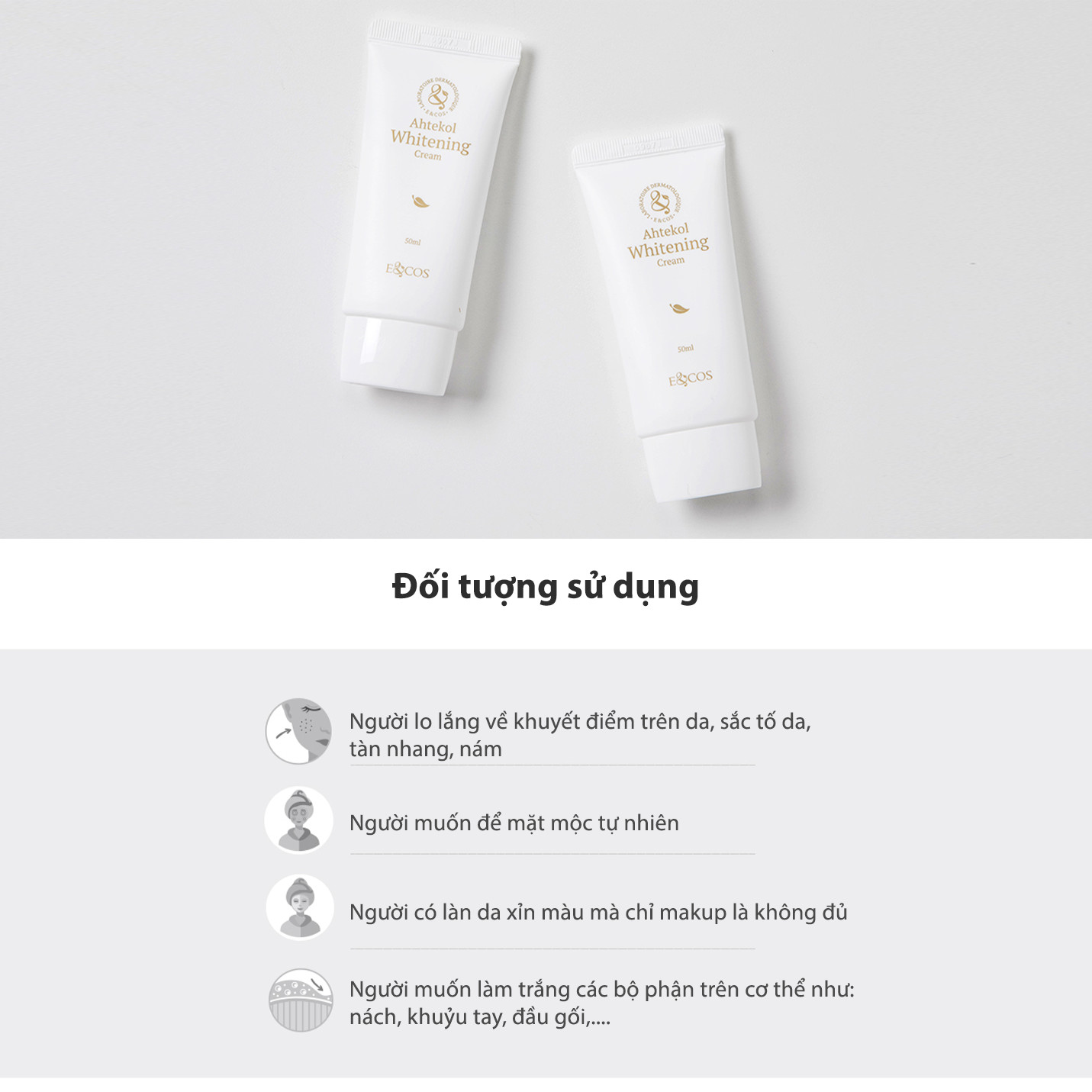 Chiết xuất ngọc trai, Niacinamide và Adenosine, kem nâng tone AHTEKOL WHITENING E&COS còn giúp da trắng rạng ngời, mịn màng và mềm mại.