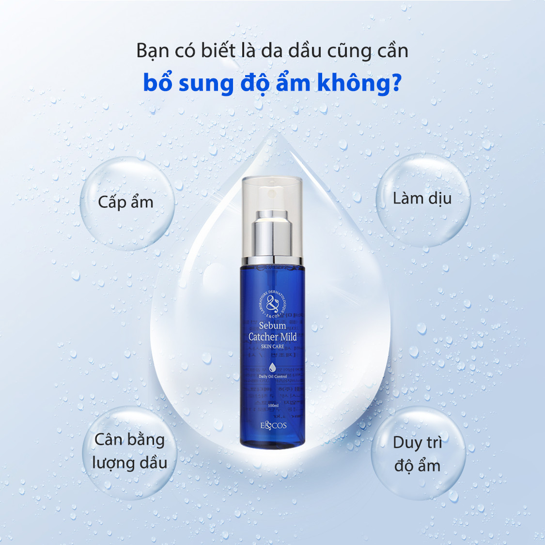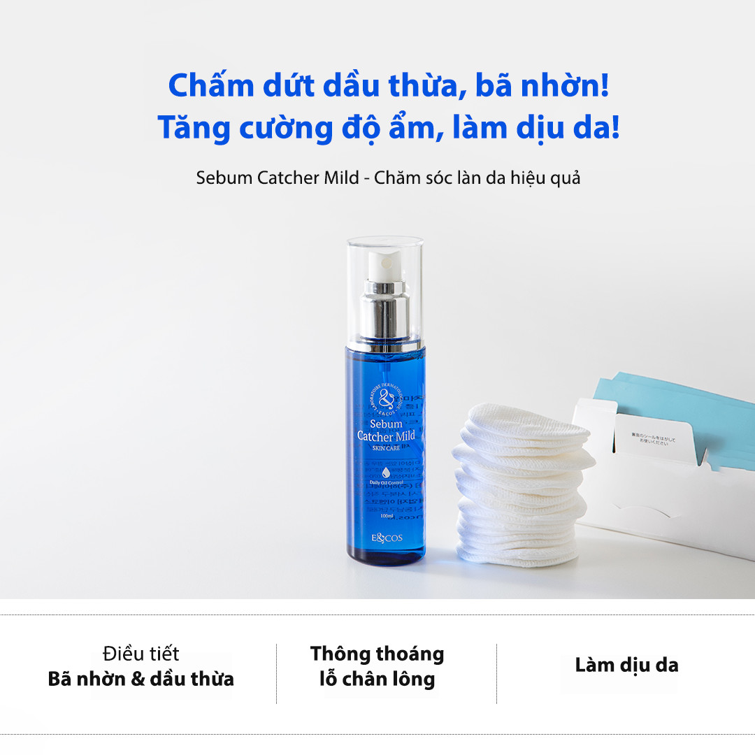 Sebum Catcher Mild E&COS là nước hoa hồng dược mỹ phẩm chăm sóc da dầu và mụn.
